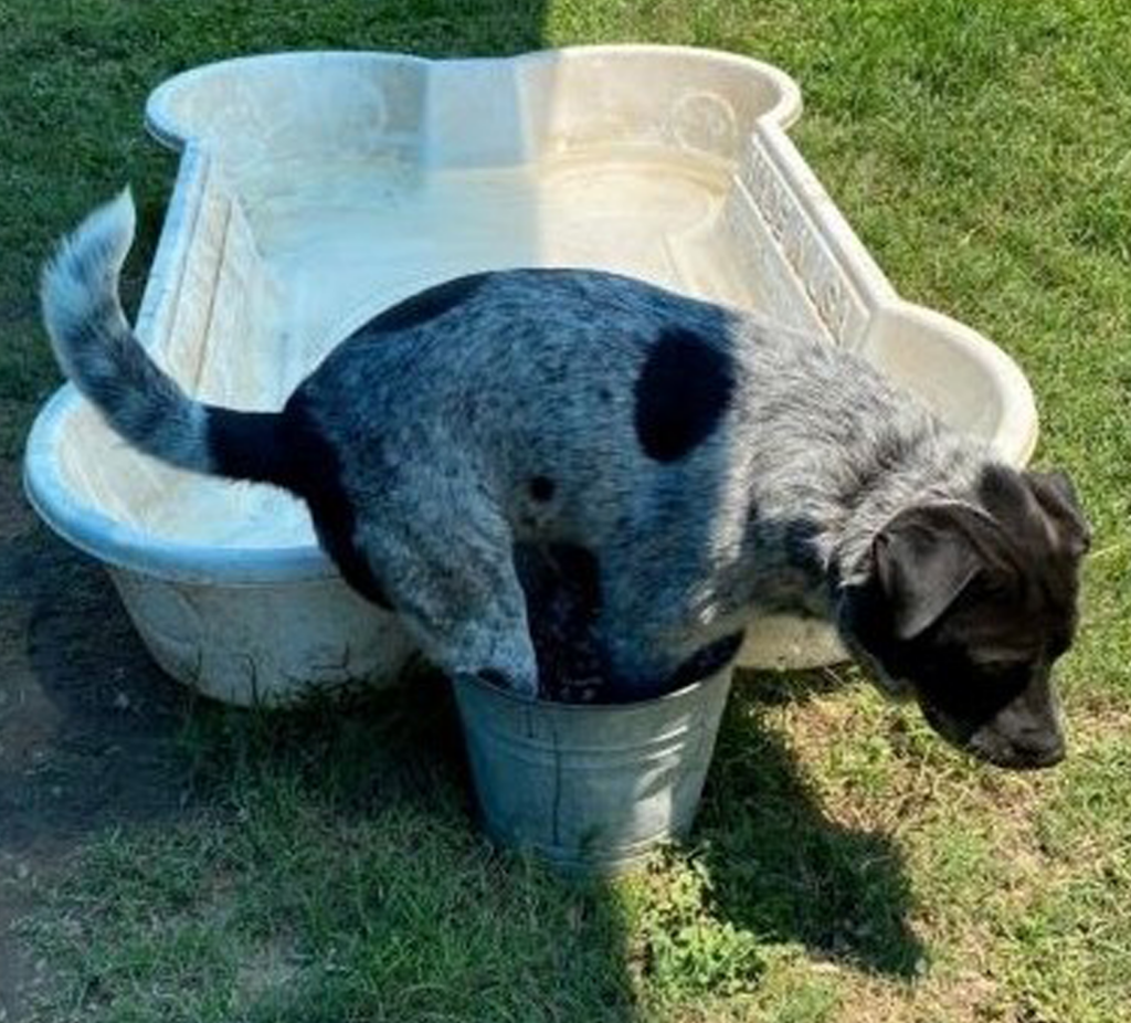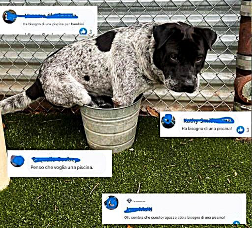 Un esempio di ciò che accade con una certa frequenza è diventato evidente e chiaro grazie a una piccola storia che vi raccontiamo: nella prima foto qui sotto vedete Centaur, un cagnolino ospitato in un canile ad Austin (capitale dello Stato del Texas) che è diventato virale per la sua peculiarità. Infatti, i gestori del canile hanno pubblicato una foto di Centaur che, in cerca di ristoro, si infila in un secchio d’acqua.